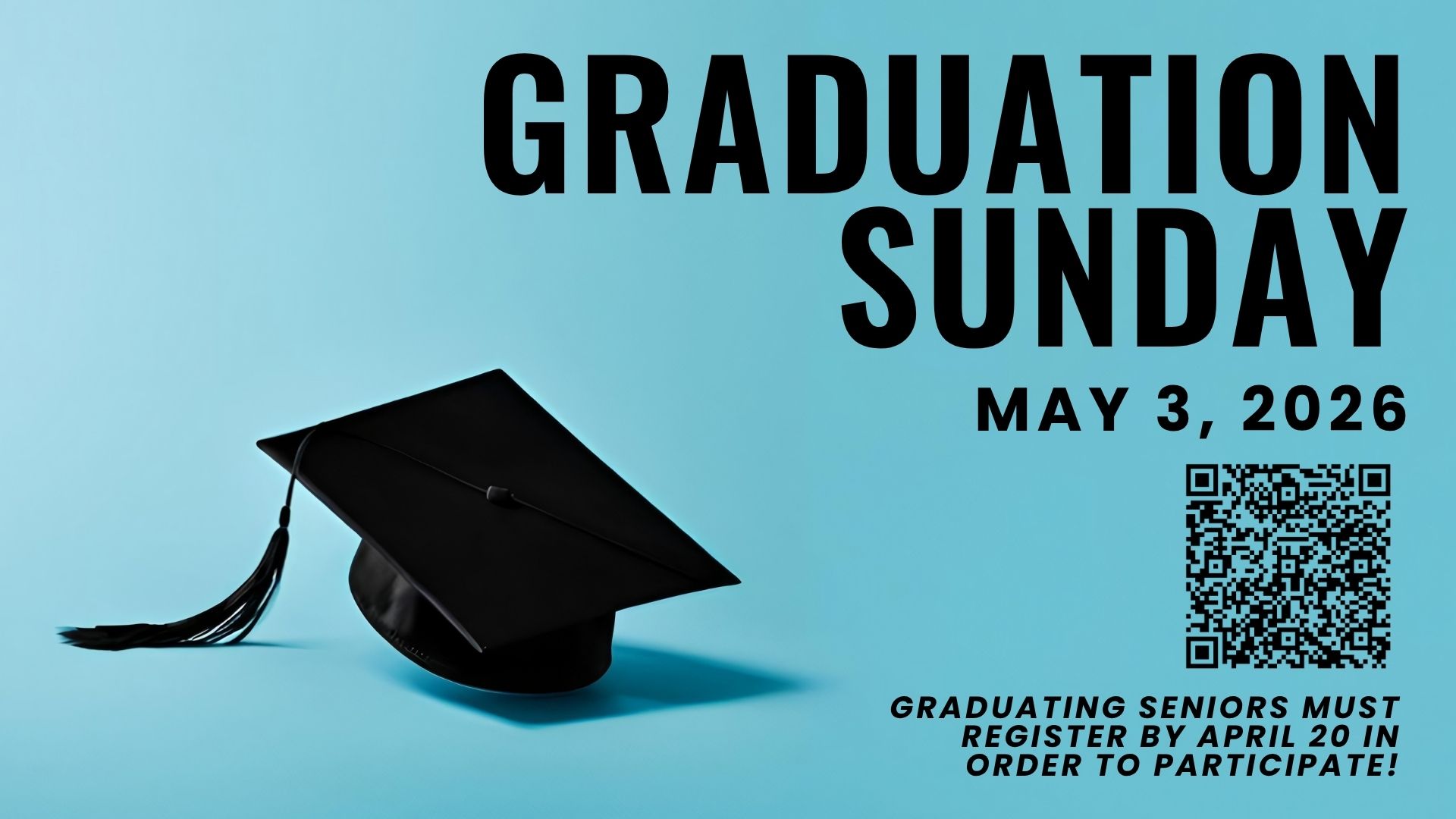 If you would like to participate in the graduate recognition that happens towards the end of the worship service on May 3rd, please submit the form that you can access by clicking the “Register” button on this webpage. The deadline to submit is April 20th.